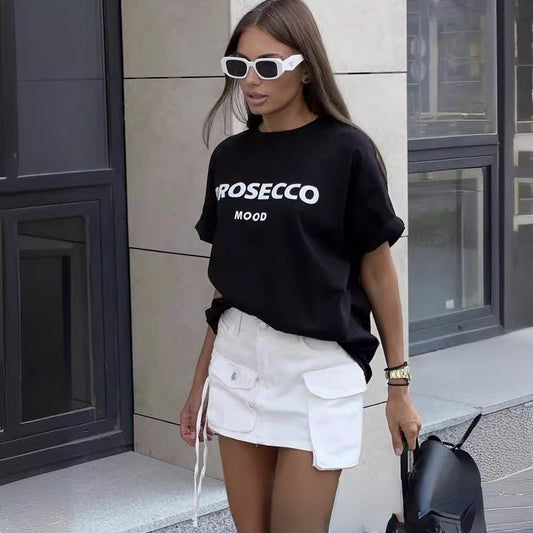 Casual Cotton Round Neck T-Shirt with Letter Print