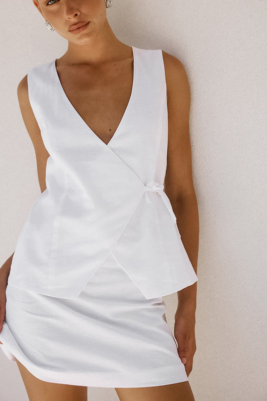 Women's Summer Linen-Blend Sleeveless V-Neck Vest and Bodycon Skirt Set