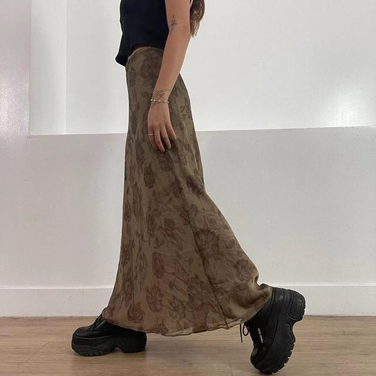 Vintage Foral Print Mesh Long Skirt