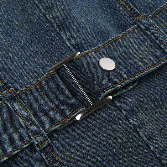 Y2K Strappy Slit Raw-edged Denim Skirt