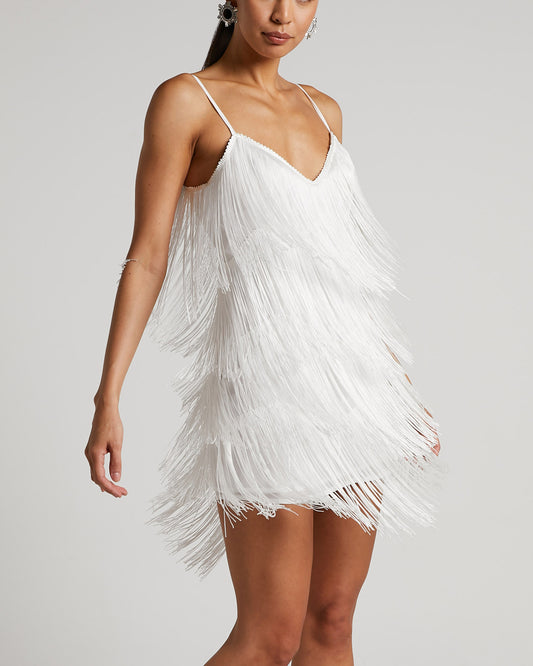 Women's Sexy Backless Deep V Fringe Cami Dress