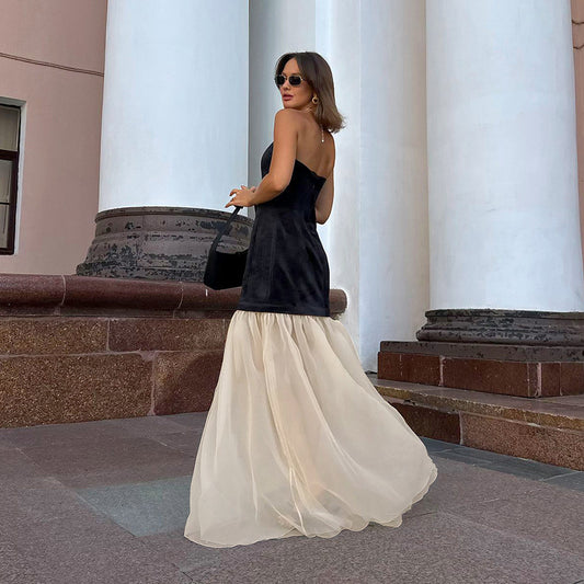 Women's Simple Halter High-Waisted Slim Fit Solid Color Dress