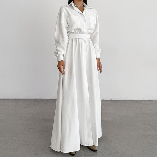 Women's French Collar Slim Shirt Dress - Elegant White Fitted Dress for Everyday Wear