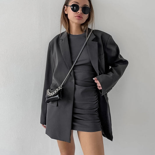 Women's High-Waisted Slim Fit Pleated Dress for Fall/Winter