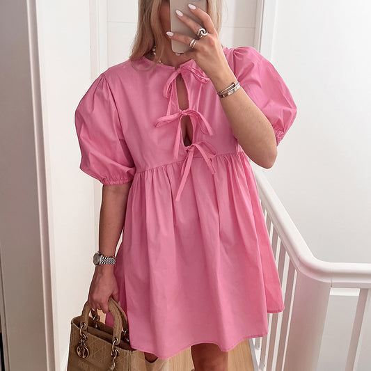 Women's Summer Casual Cotton Bow Tie Mini Dress