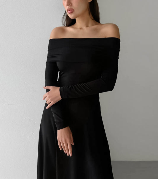 Women's Fleece-Knit Off-Shoulder Bodycon High-Waist Long Sleeve Dress