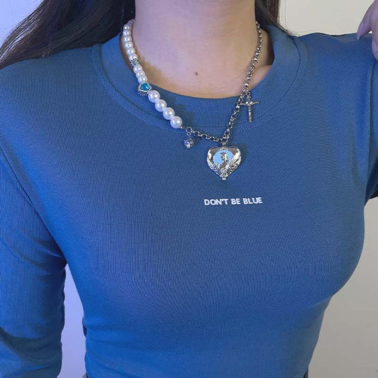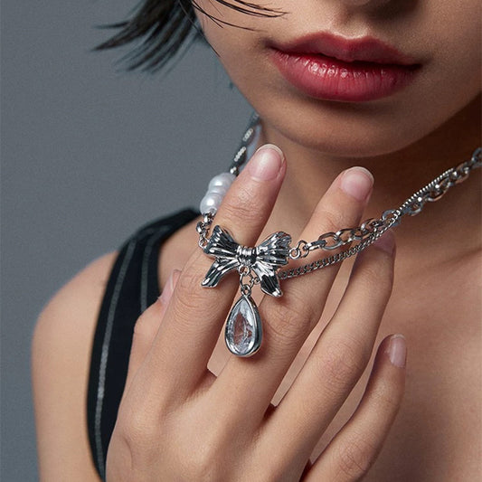 Large and Small Pearl Wrapped Zirconia Multi-Wear Necklace