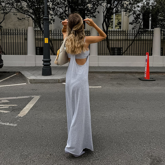 Sexy Knit Tank Dress Set | Loose U-Neck Maxi Dress + Matching Inner Vest