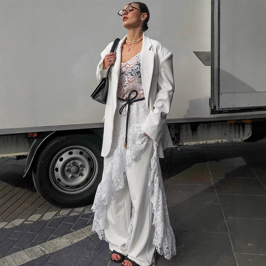Sexy Lace Two-Piece Set | Backless Tank Top + High-Waist Sheer Maxi Skirt with Belt