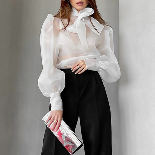 Mesh Sheer Puff Sleeve Bow Top