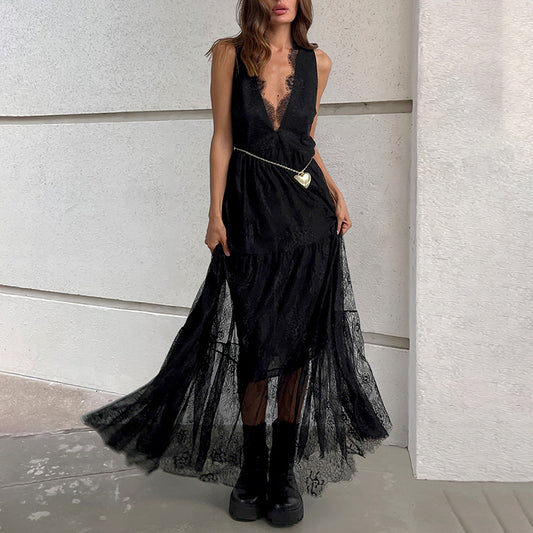 Women's Sexy Lace V-Neck Long Dress