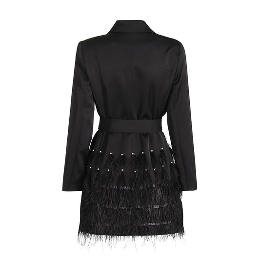 Women's Luxe Rhinestone Chain Blazer and Mini Skirt Set
