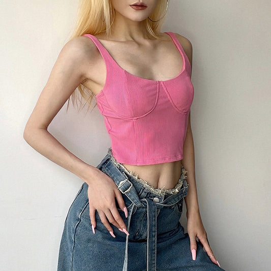 Tight Irregular Sleeves Personalized Chain Halter Neck Backless Vest