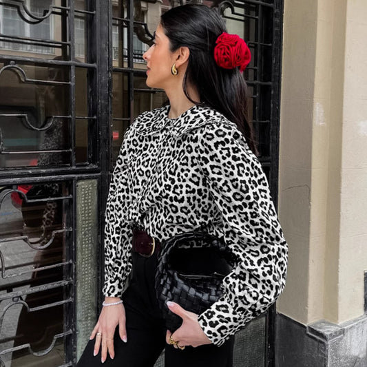 Women's Leopard Print Cotton Turn-Down Collar Shirt