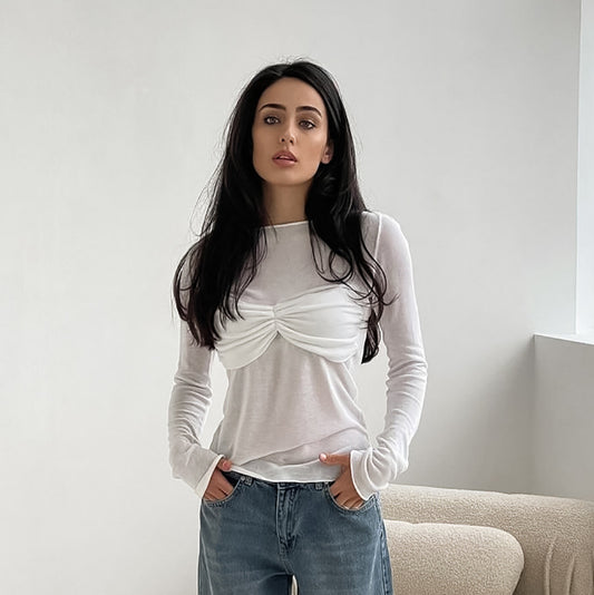Women’s Sheer Sexy Fitted Knit Long Sleeve T-Shirt