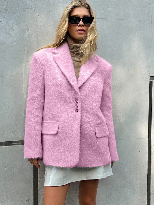 Women's Fashionable Loose Lapel Plush Coat
