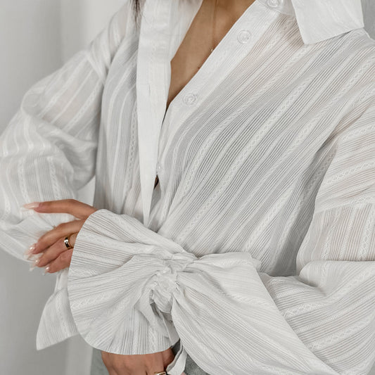 Women's Autumn Fashion Bell Sleeve White Collared Office Shirt