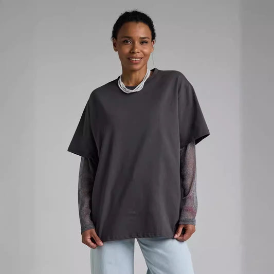 Summer Chic: Mesh Panel Long Sleeve T-shirt - Loose-Fit Sun Protection Top