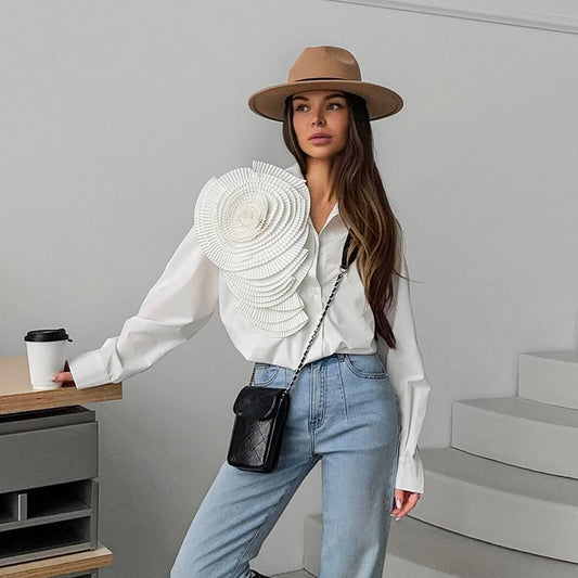 Women's Fashion Casual Commuting Drop Shoulder Floral Loose Shirt