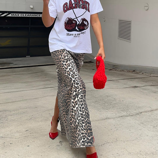 Fashion Cotton Leopard Print Ankle-Length Straight Skirt