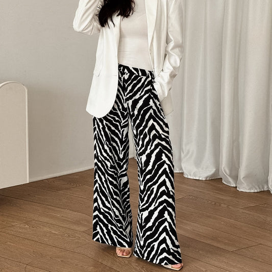 Women's Zebra Print Loose Wide-Leg Casual Pants