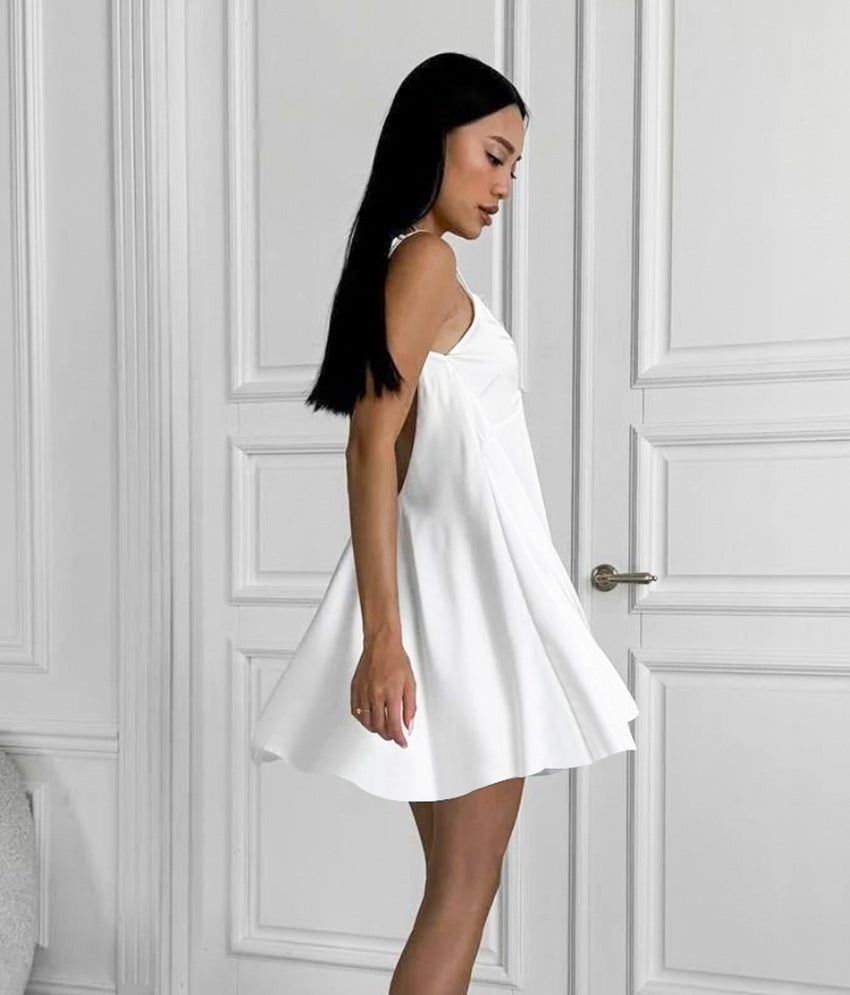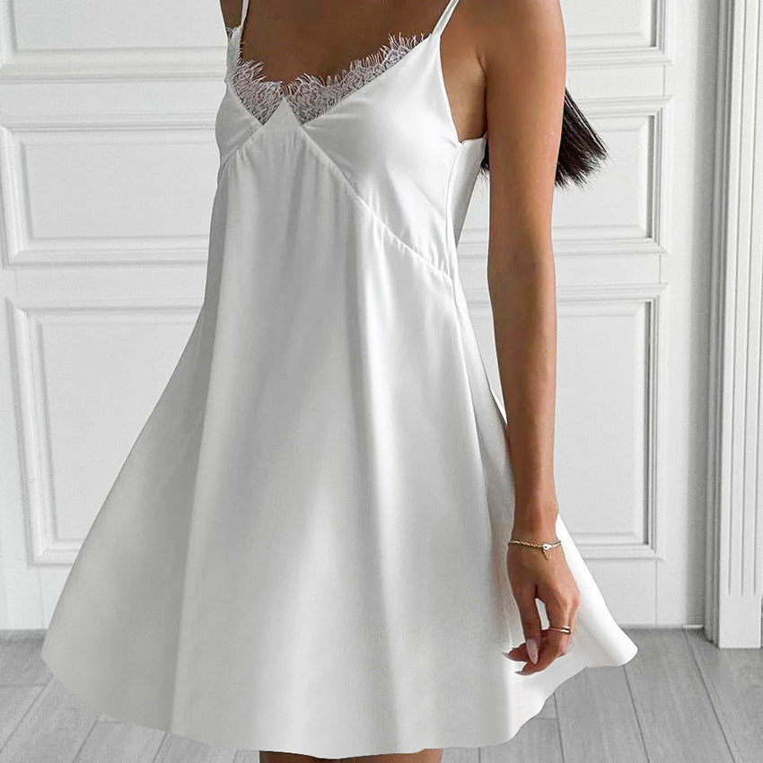 Women's White Satin Lace Slip Dress – Elegant V-Neck Cami Nightdress Sleepwear